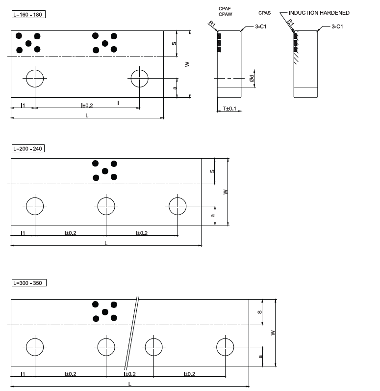 Length (L) : 160 to 350 mm - Type B,S