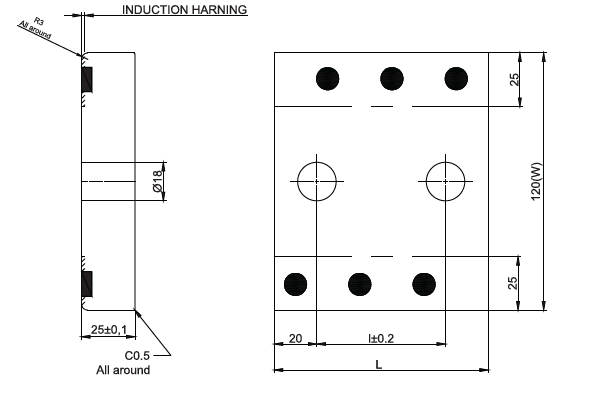 Hardness :  40HRC-(Induction Hardened)