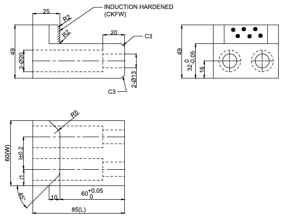 Hardness : 55 HRC (Induction Hardened)