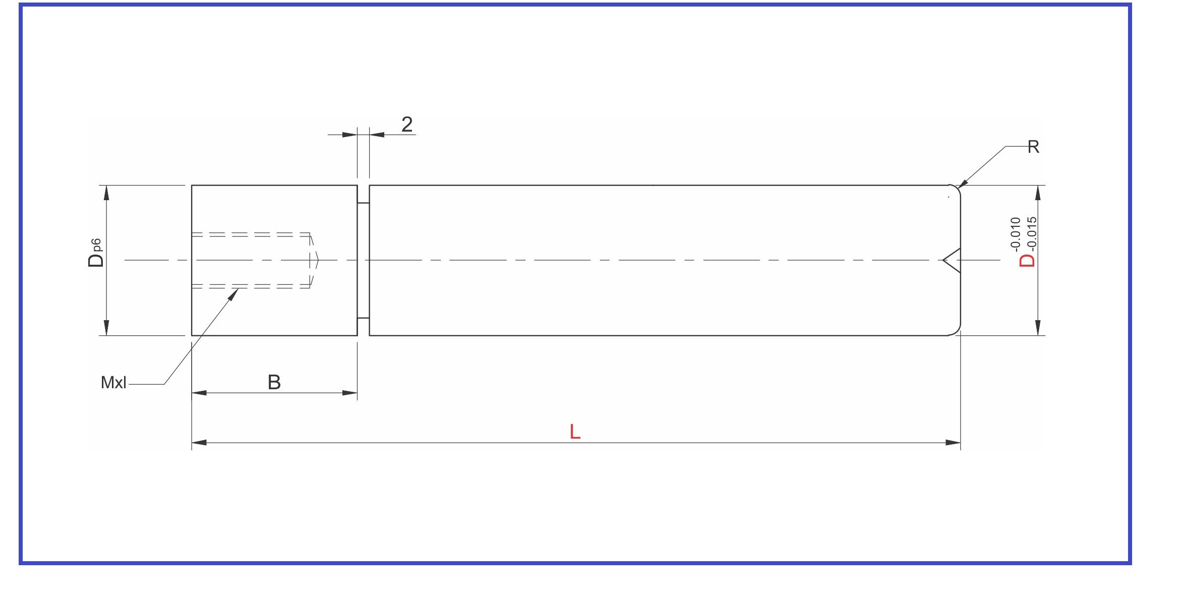 Order Type :- Code X Dia D X Length L